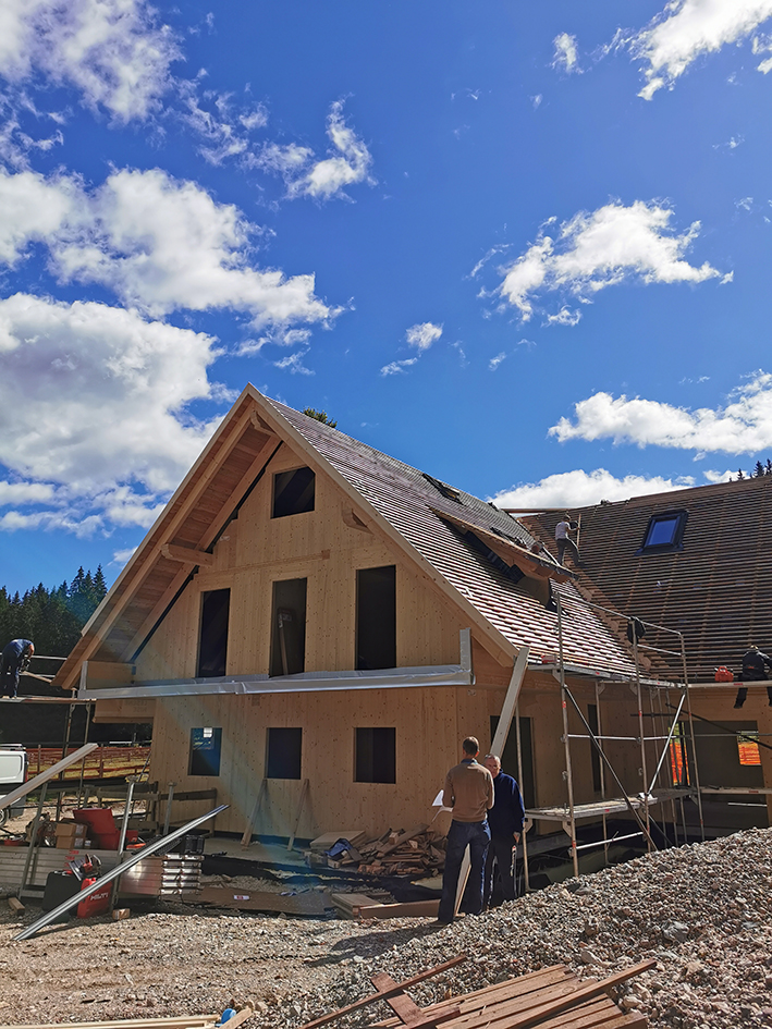 A luxury apartment chalet with a restaurant and wellness/sauna area is being built in a fairytale location in Pokljuka - a part of Triglav National Park. The exterior is in line with tradition, the construction is entirely wooden, the roofing is shingled. The interior will be made of high quality materials.