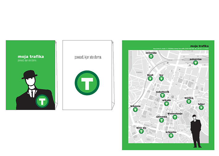 We developed a new brand and visual identity for Tobačna Ljubljana, the largest tobacco company in Slovenia. The core idea was to leverage the generic name "trafika," and by doing so positioning the client as the leading convenience store retailer in the market. Initially, we proposed green as the primary color, reflecting our emphasis on environmental awareness. However, red ultimately proved to be the stronger choice.
